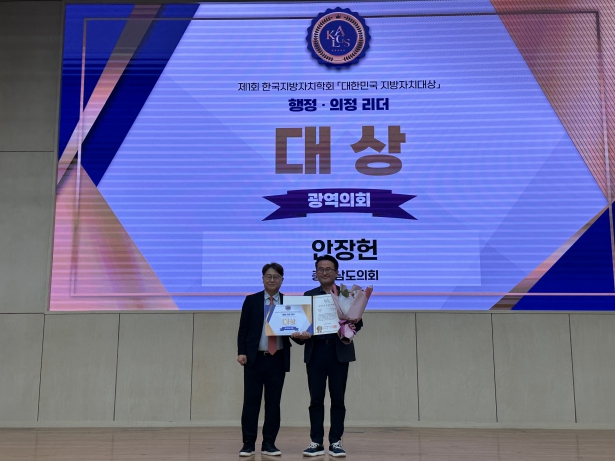 안 의원은 “이번 수상은 개인의 영광이 아니라 충남도민과 함께 만들어온 성과”라며 “앞으로도 지역의 미래를 위한 실질적 정책 대안을 발굴하고 지방자치의 가치를 높이는 데 최선을 다하겠다”고 소감을 밝혔다.