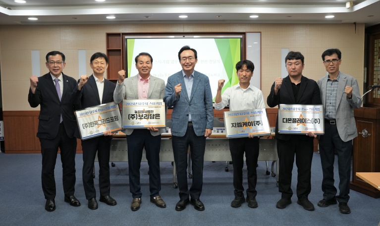 ![]() 나주시가 ‘2025년도 스타기업과 pre스타기업’을 각각 2곳 선정하고 현판수여와 업무협약을 체결했다 |