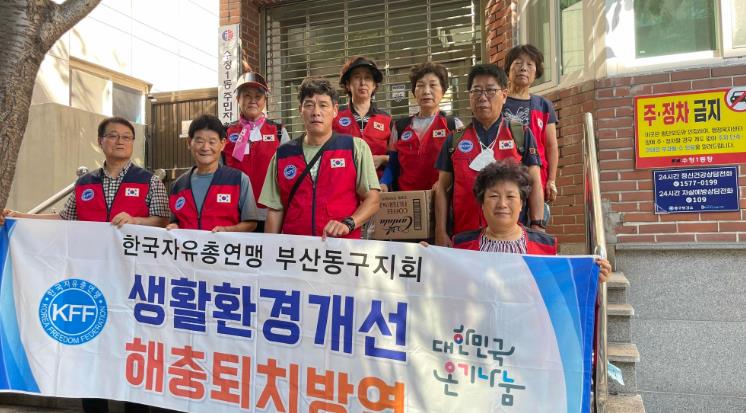 한국자유총연맹 부산동구지회 수정1동위원회는 주민들의 생활에 도움을 주기 위하여 방역뿐만 아니라 사랑의 성품 나누기 행사 등 다양한 활동을 이어가고 있다.