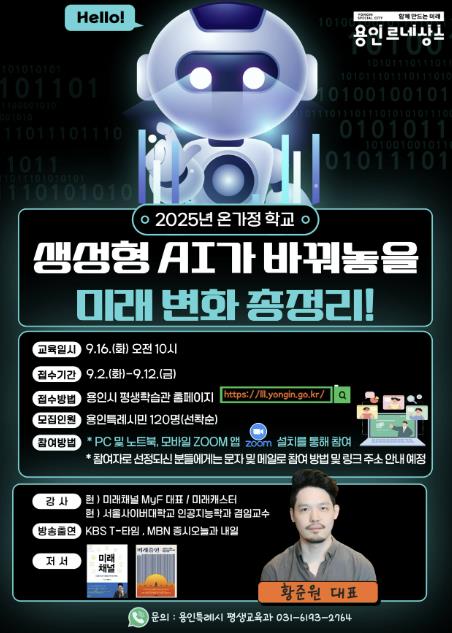 ![]() 용인특례시 '생성형 AI가 바꿔놓을 미래 변화 총정리!' 특강 안내 포스터 |