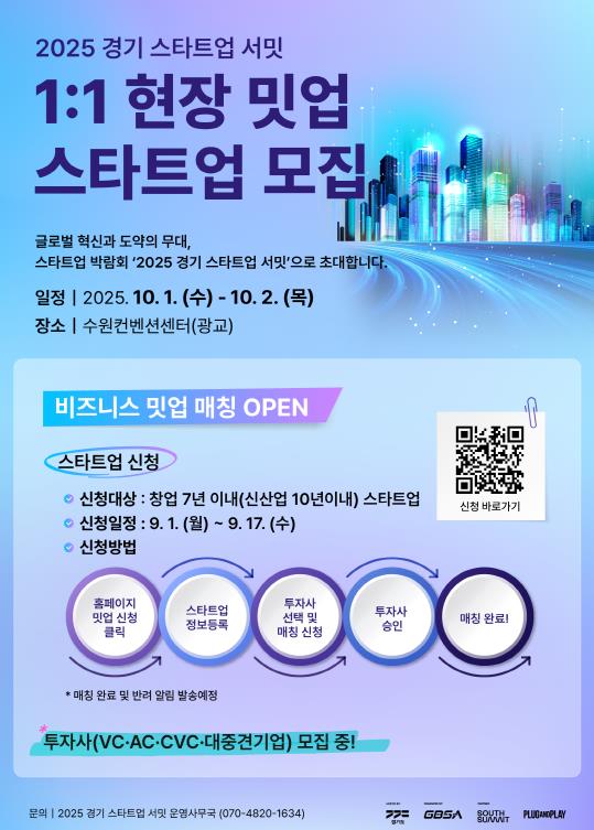 ![]() 2025 경기스타트업서밋(G-SUMMIT) 1대1 현장 밋업 모집 포스터 |