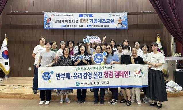 한편, 지난 8월 27일 진행된 한방 기공체조 교실에서 참여자들과 서산시 건강증진과 직원들은 ‘청렴 서산’ 실현 의지를 다지는 캠페인을 전개했다.