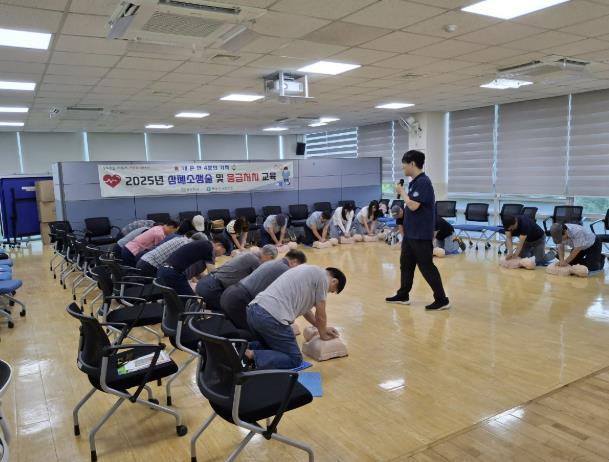 교육은 이론과 실습을 병행해 ▲심폐소생술 방법 ▲AED 사용법 ▲영유아 심폐소생술 및 기도 폐쇄 시 응급처치 등 실제 상황에 적용할 수 있는 대처법을 중점적으로 다뤘다.
