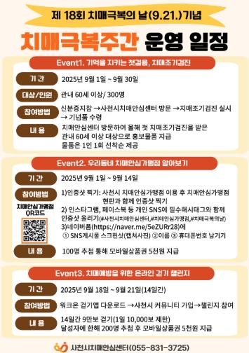 또한, 치매안심가맹점 이용 인증 이벤트와 걷기 챌린지 등 시민 참여형 다양한 이벤트도 진행된다.