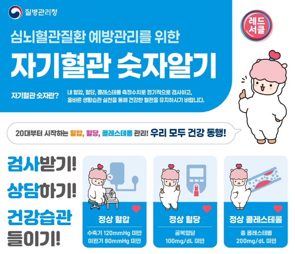 자기혈관 숫자란, 내 혈압, 혈당, 콜레스테롤 측정수치이며 자기혈관 숫자알기는 자신의 혈압, 혈당, 콜레스테롤 수치를 알고 관리하는 것이다. 정기적으로 검사하고 올바른 생활습관을 실천하여 정상수치를 유지하는 것에 대한 중요성을 이번 캠페인을 통해 홍보한다.