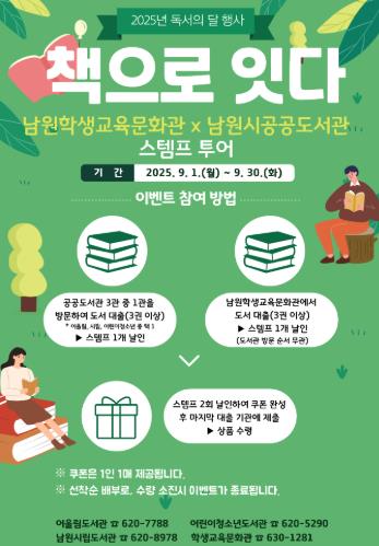 이번 프로그램은 9월 2일부터 30일까지 운영되며, 자세한 사항은 남원시공공도서관 홈페이지 및 남원학생문화관 홈페이지를 통해 확인할 수 있으며, 전화로도 문의할 수 있다.