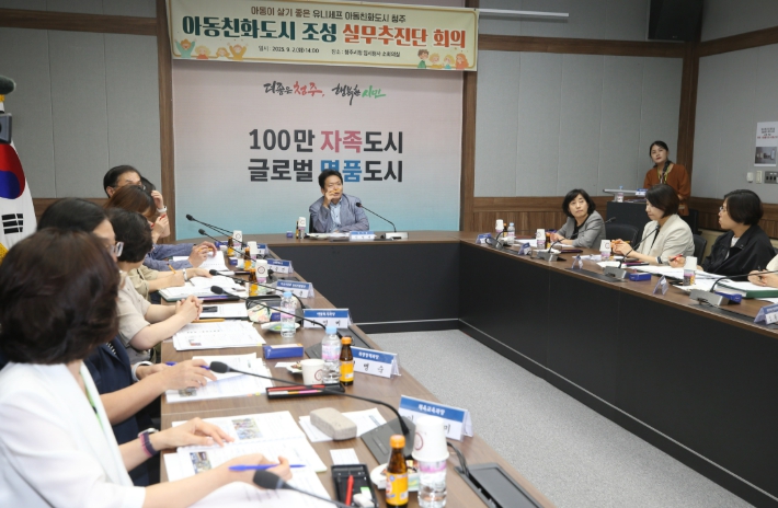 신병대 청주부시장이 단장, 이자우 복지국장이 부단장을 맡고 아동복지과 등 15개 부서가 참여하고 있는 실무추진단은 아동친화도시 전략사업의 이행 상황을 점검하고, 시 정책이 아동과 가정, 지역사회에 미치는 영향을 살피고 있다.