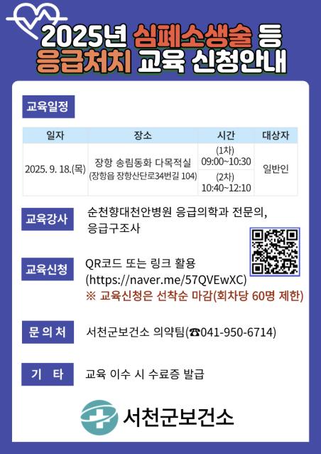 ![]() 서천군보건소, 심폐소생술 교육 신청자 모집 |