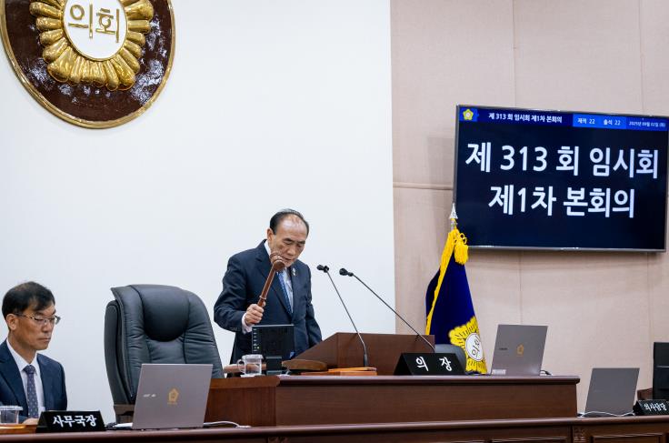 ![]() 성북구의회 임태근 의장이 제313회 임시회를 주재하고 있는 모습 |