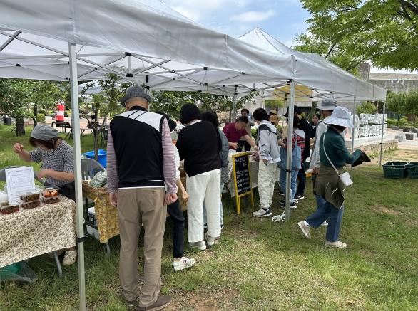 장터에는 총 14개의 참여 부스가 마련되어 지역 농산물과 가공식품, 수공예품, 체험 프로그램 등 다양한 먹거리와 즐길거리를 선보인다.
