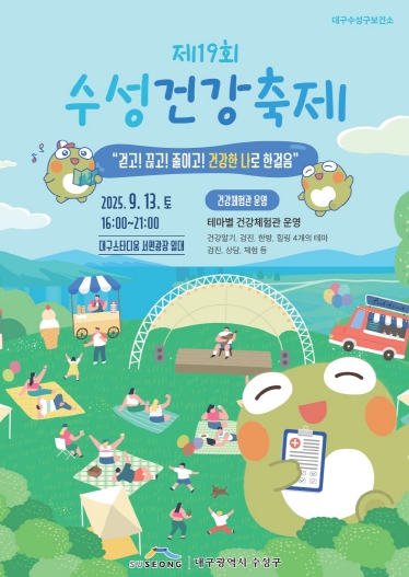 김대권 수성구청장은 “다양하고 실속 있는 수성건강축제에서 건강에 유익한 정보를 가득 담아가시길 바란다”며 “앞으로도 주민 건강 수준 향상을 목표로 건강 도시 조성에 더욱 힘쓰겠다”고 전했다.