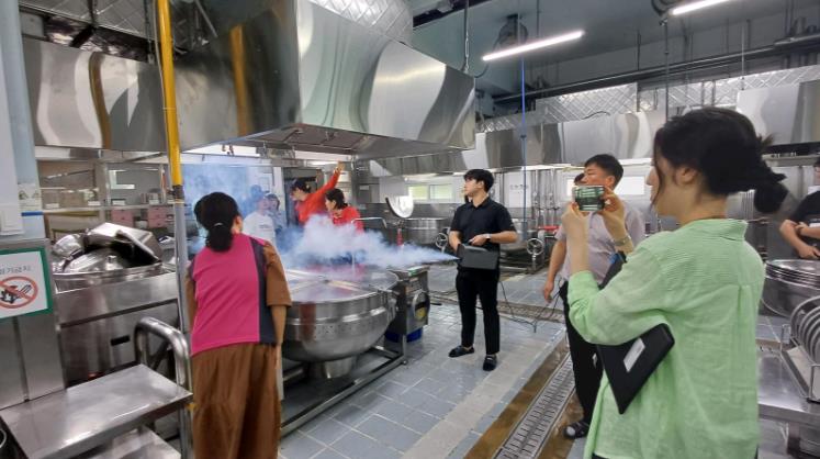 점검단은 고온 조리 과정에서 발생하는 조리흄 배출 상태와 환기시설 작동 여부를 확인하고, 급식실 근무환경 개선 효과를 살폈다.