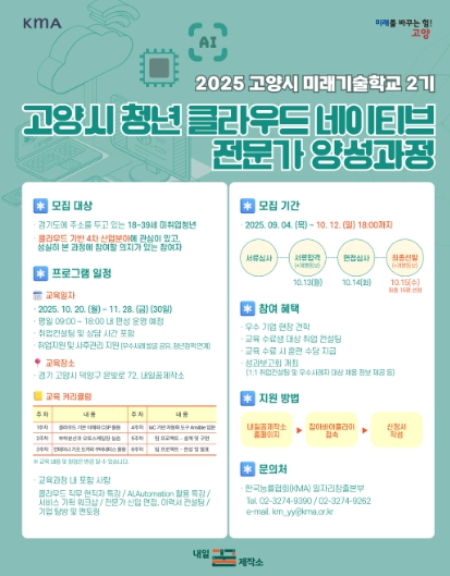 시 관계자는 “이번 청년 클라우드네이티브 전문가 양성과정은 단순한 기술 교육을 넘어, 청년들이 미래 산업에서 경쟁력 있는 전문가로 성장할 수 있도록 돕는 종합 프로그램”이라며 “많은 청년들이 참여해 디지털 전환 시대를 선도할 핵심 인재로 자리매김하기를 기대한다”고 밝혔다.