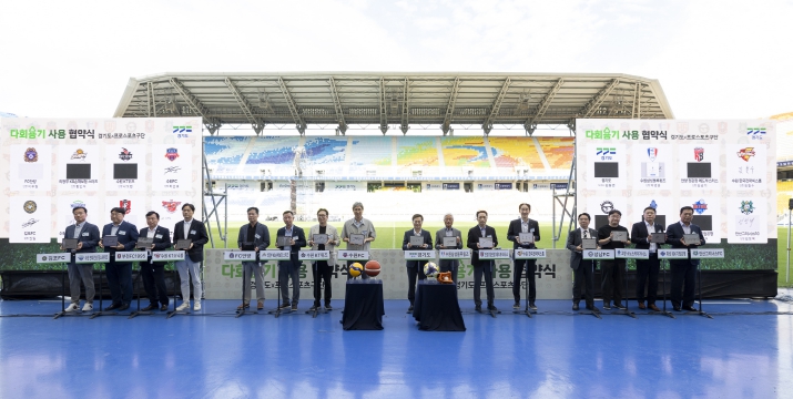 4일 김동연 경기도지사와 도내 프로축구-야구-농구-배구단(총 18개)이 경기장 내 모든 식음료점, 주변 푸드트럭에 다회용기를 도입하기로 협약을 맺었다.