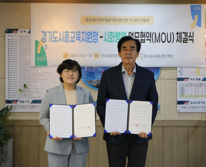 협약의 주요 내용은 ▲교육활동 침해 피해 교원 및 직무 스트레스로 상담이 필요한 교원 지원 ▲시흥교육지원청 관내 고등학생 대상 심리 상담 및 치료 연계 ▲의료기관 협력 기반의 진료 확대 ▲실무협의회를 통한 지속적 관리 등이다.