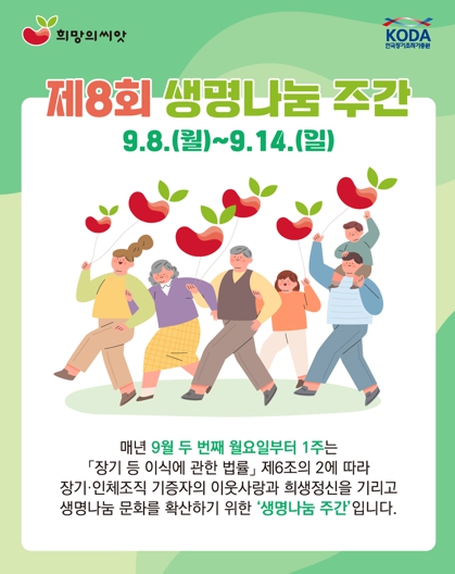 ‘생명나눔 희망의씨앗’ 캠페인은 장기·인체조직 기증과 기증희망등록 참여를 알리는 전국 합동 캠페인이다. ‘희망의씨앗’은 씨앗에서 새로운 싹이 돋아나는 모습을 형상화한 생명나눔 통합 브랜드로, 장기·인체조직·조혈모세포 등 생명 자원을 통해 새로운 희망이 싹튼다는 의미를 담고 있다.