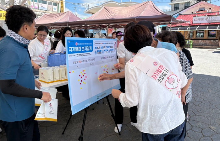 5일 임계면 행정복지센터에서는 직장인 및 지역 주민을 대상으로 혈압·혈당·콜레스테롤 측정과 건강상담을 제공했으며, 사통팔달시장에서는 혈압·혈당 수치 인지도 조사 등 홍보 캠페인을 진행했다.