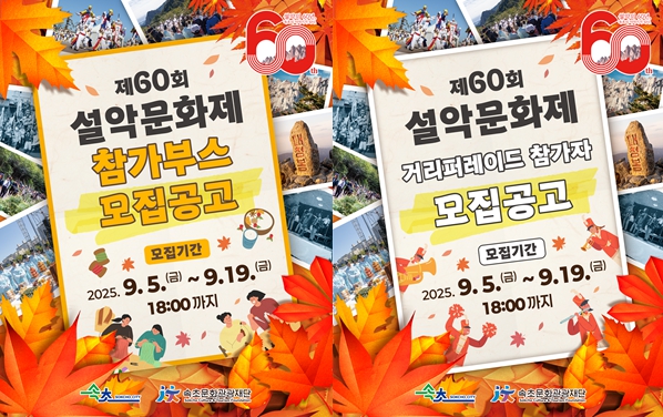 이병선 이사장은 “설악문화제 60년의 역사를 기념하며 시민과 관광객이 함께 즐길 수 있는 뜻깊은 프로그램을 준비했다”며 “많은 분의 참여로 설악문화제가 진정한 시민 화합의 장으로 거듭나길 기대한다”고 말했다.