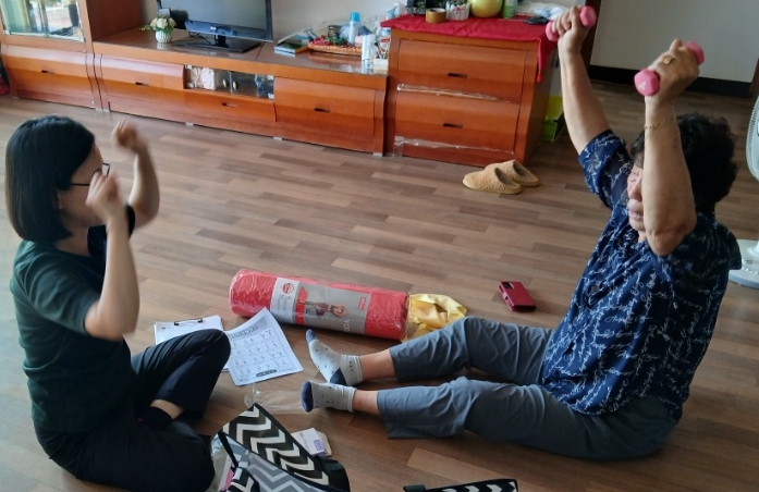 신체활동 건강꾸러미는 찾아가는 보건복지서비스의 일환으로 거동이 불편하거나 이동 수단에 제약이 있어 의료서비스 이용이 어려운 취약계층 어르신의 건강관리를 위한 프로그램이다.