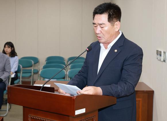 ![]() 김성일 도의원이 지난 9월 9일 보건복지환경위원회에서 조례안 제안설명을 하고 있다. |