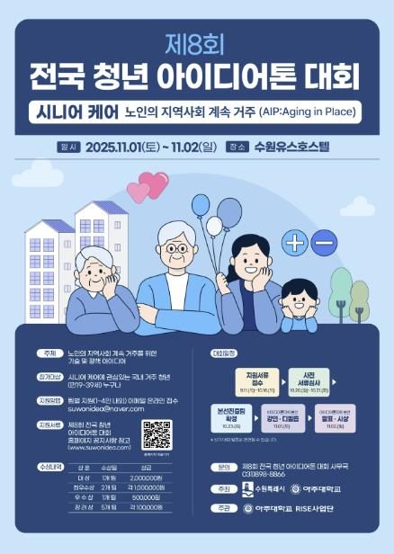 수원시 관계자는 “이번 대회는 초고령 사회에 대응할 청년들의 창의적 해법을 모색하는 뜻깊은 자리”라며 “시니어케어(노인 돌봄)와 지역사회 계속 거주를 위한 참신한 아이디어가 발굴돼 정책과 산업 현장에 기여하길 바란다”고 밝혔다. 이어 “청년들의 적극적인 참여를 기대한다”고 덧붙였다.