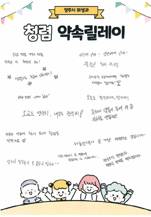 ![]() 양주시 보건소 위생과, 직원 청렴도 제고를 위한 청렴 롤링페이퍼 실시 |