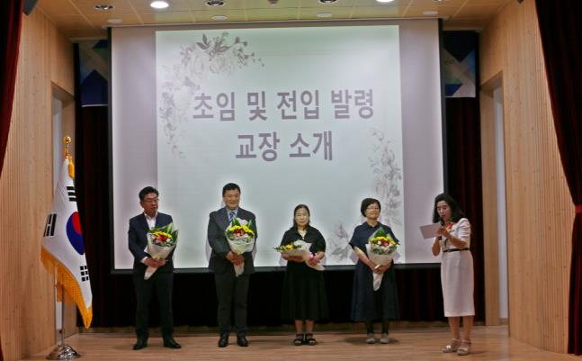 이날 회의에는 관내 유·초·중·고·특수학교 원장, 교장 총 60여 명이 참석했으며 2025.9.1.자 초임 및 전입 발령을 받은 아홉 분의 교장선생님을 축하하고 소개하는 자리와 함께 2학기 즐겁고 안전한 학사운영과 안전관리 및 다양한 교육 프로그램 운영 등 현재 추진하고 있는 각 부서별 전달 사항과 주요 사업에 대해 안내하는 시간을 가졌다.