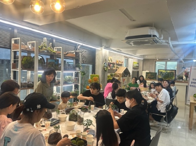탄소중립 실천 방법을 함께 모색했다. 이론 수업 후에는 숲과 바다를 주제로 유리병 정원(테라리움)을 직접 만들며 생태계의 순환 원리를 체험했다.