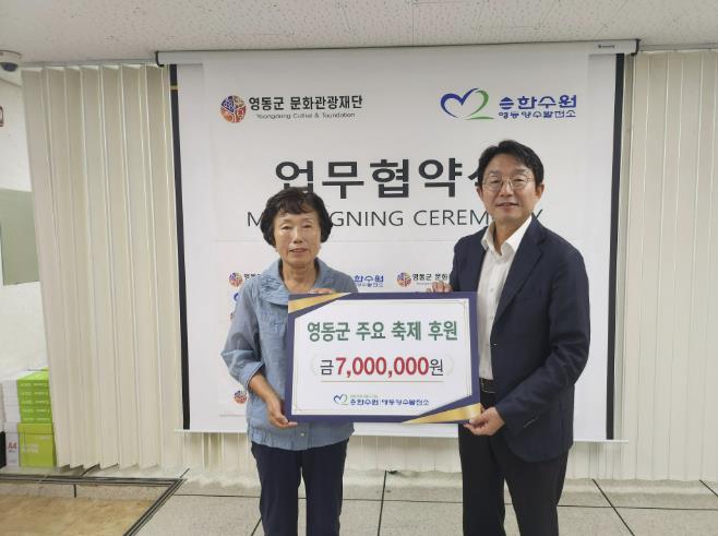 임정묵 소장은 “영동에서 시행하는 중요 축제에 영동양수건설소가 조금이나마 도움이 되고자 후원을 준비했으며, 앞으로도 지역의 발전과 군민과의 상생을 위해 더욱 노력하겠다”라고 밝혔다.