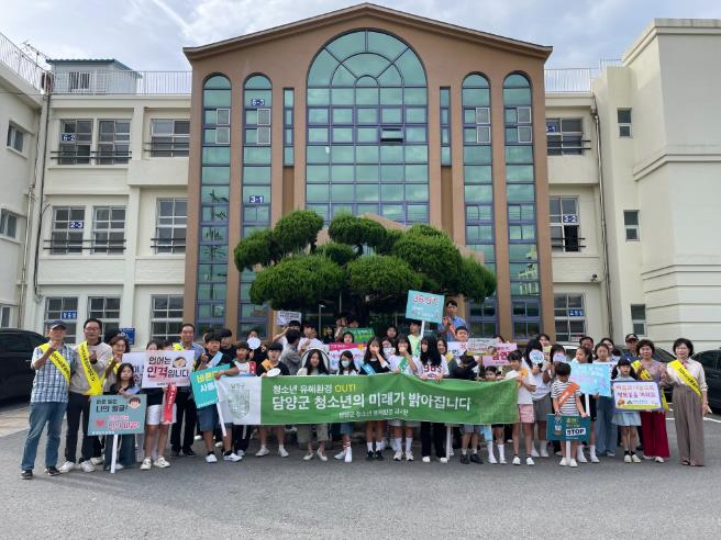 이번 캠페인은 담양군, 담양경찰서, 담양교육지원청, 청소년유해환경감시단, 담양군청소년상담복지센터 등 관계기관과 민간단체가 함께 참여해 담양남초등학교 앞에서 캠페인을 진행했다.