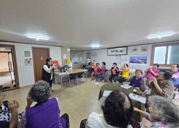 ![]() 율리경로당에서 진행된 ‘찾아가는 건강관리 사무소’ 프로그램 |