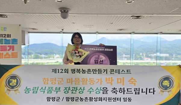 19일 함평군에 따르면 농림축산식품부가 지난 17일 주최한 행복농촌만들기 콘테스트에서 전국 6명만 우수주민으로 선정됐으며, 박미숙 씨가 함평군 대표로 이름을 올렸다.