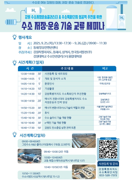 ![]() 강원특별자치도, 「수소 저장·운송 기술 교류 세미나」 |