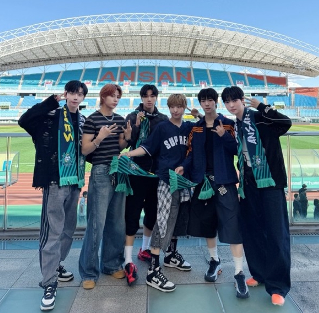 비보이즈(윤서, 구현, 민준, 학성, 타쿠마, 원천)는 지난 21일 안산 와~스타디움에서 열린 하나은행 K리그2 2025 30라운드 안산 그리너스 FC와 충북청주 경기에 초청받아 시축에 나섰다.