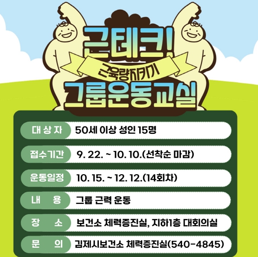 ![]() 근테크! 근육량 지키기 프로그램 참여자 모집 |