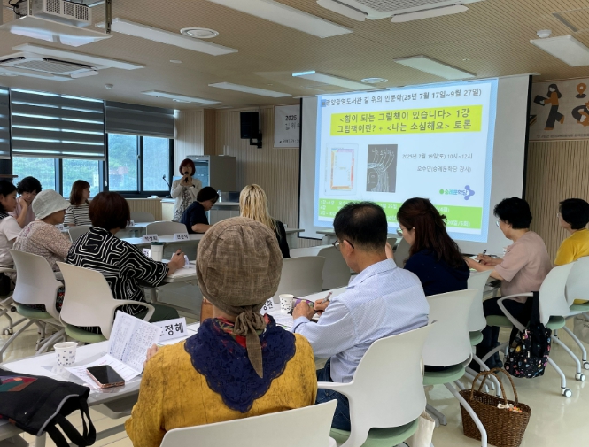 올해 프로그램은 '힘이 되는 그림책 인문학'을 주제로 7월 19일부터 9월 20일까지 매주 토요일 총 10회(강연 9회, 탐방 1회) 운영됐으며, 두 달간 200여 명이 참여해 높은 관심과 호응을 받았다.