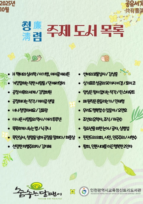 ![]() 작은도서관과 함께하는 ‘공유서가: 청렴’ 운영 |