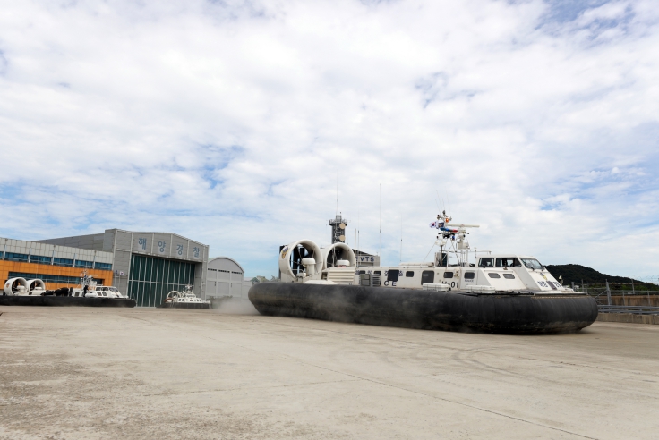 ![]() 승객 구조를 위해 출동 중인 공기부양정 |