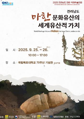 국제학술대회는 ‘전라남도 마한 문화유산의 세계유산적 가치’를 주제로 기조강연, 주제발표, 종합토론이 진행된다.