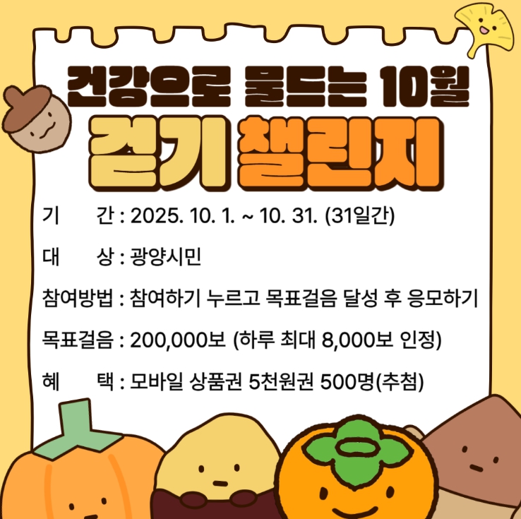![]() 워크온 ‘건강으로 물드는 10월 걷기 챌린지’ 운영 |