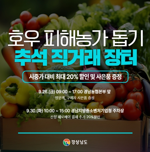 ![]() 추석맞이 호우피해지역 농특산물 직거래장터 |