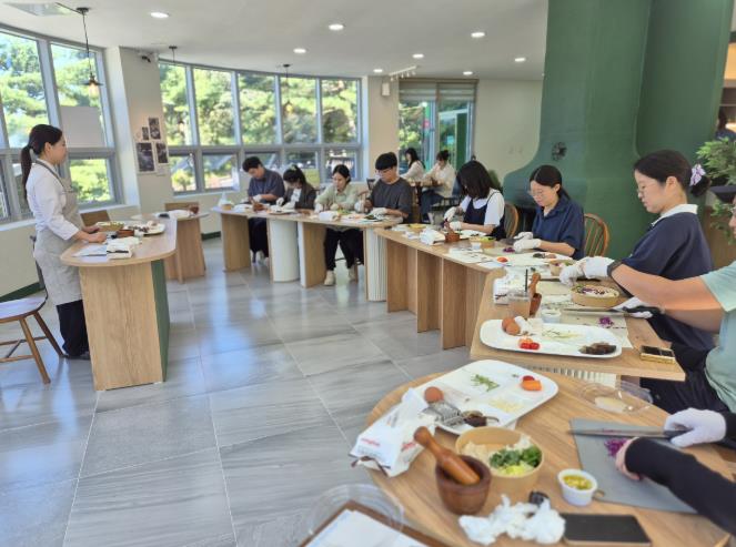 ![]() 임신부부 10쌍을 대상으로 치유음식 체험이 진행되고 있다. |