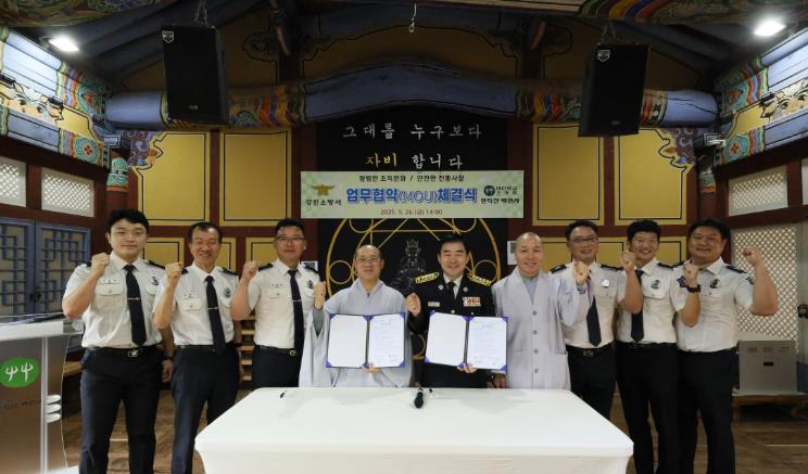 주요 협약 내용은 ▲공직자의 봉사정신·청렴 의식 제고를 위한 법문 및 체험 프로그램 ▲다도 체험을 통한 소방공무원의 심신 안정 지원 ▲국가문화재 및 전통사찰 화재 예방을 위한 안전컨설팅 지원 ▲사찰 관계자 대상 소방안전교육·소방훈련 협력 등이다.