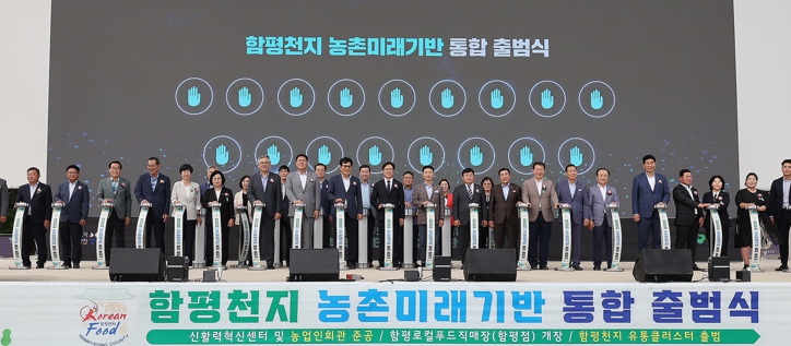 출범식은 생산부터 유통까지 아우르는 함평군 농업의 미래 성장 기반을 선포하는 자리로, 신활력혁신센터 및 농업인회관 준공식과 함평로컬푸드직매장(함평점) 개장식, 함평천지 유통클러스터 출범식을 통합해 진행됐다.
