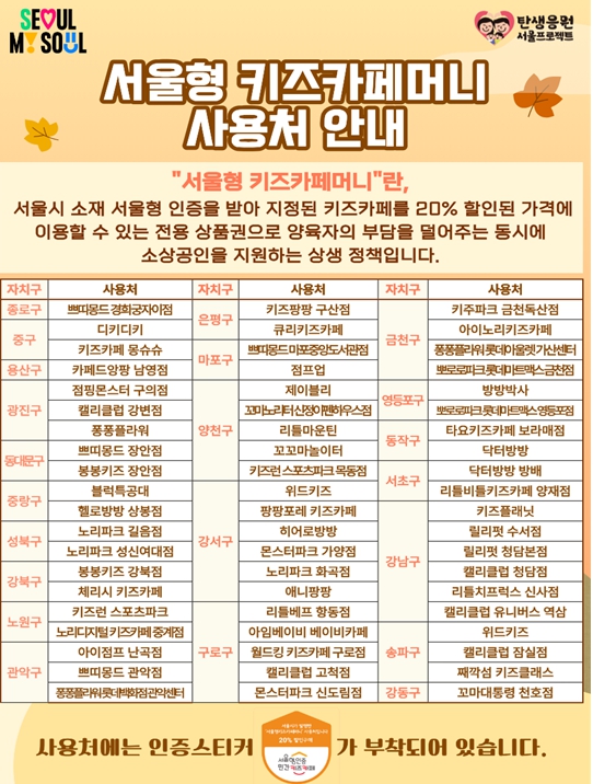 ![]() 서울형키즈카페머니 포스터(60개소) |