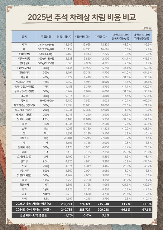 ![]() 2025년 추석 차례상 비용 조사 결과 |