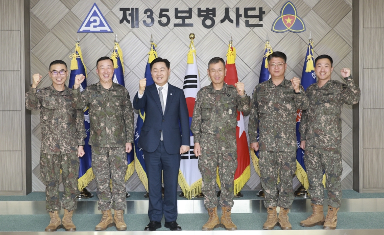 ![]() 29일 추석 명절을 앞두고 김관영 도지사가 육군 제35보병사단을 방문하여 김광석 35사단장에게 지역 안전 수호에 감사의 마음을 전하고 있다. |
