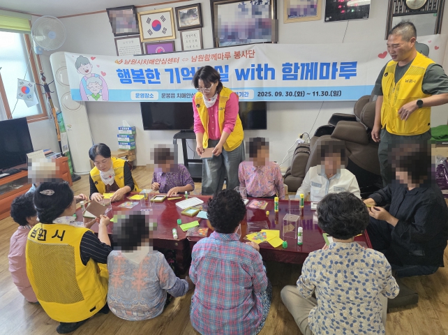 한용재 남원시 치매안심센터장은 “치매안심마을은 주민 스스로가 서로를 돌보는 치매 친화적 공동체를 만드는 것을 목표로 한다”며, “이번 프로그램은 지역 봉사단체와 함께하는 의미 있는 협력 모델로서, 앞으로도 시민이 안심하고 생활할 수 있는 환경 조성을 위해 다양한 활동을 이어 나가겠다”라고 전했다.