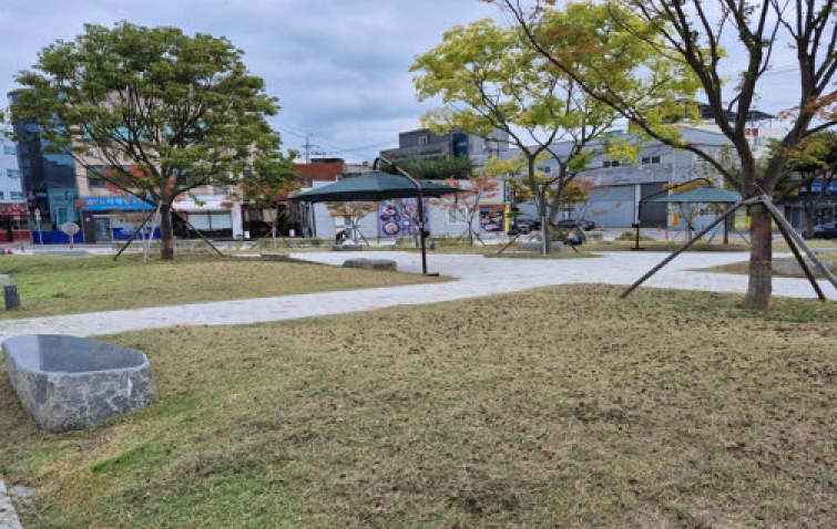 비점오염 저감 사업의 일환으로 조성된 군청 앞 ‘빗물정원’은 도심 녹지 및 투수 공간을 제공하여 기후변화에 대응하고, 빗물의 침투, 저류, 체류 등 부가적인 기술 요소를 적용하여 물순환 체계를 개선하고자 하는 친환경 기능 시설이자 군민 휴게 공간이다.
