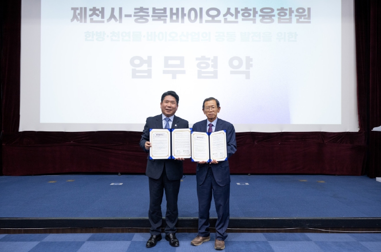 충북바이오산학융합원은 오송 바이오클러스터의 핵심 기관으로, 바이오·천연물 분야 연구개발, 전문 인력 양성, 기업 지원 사업 등을 수행해 왔다. 이번 협약을 통해 제천시와의 협력 시너지 효과가 한층 강화될 것으로 기대된다.